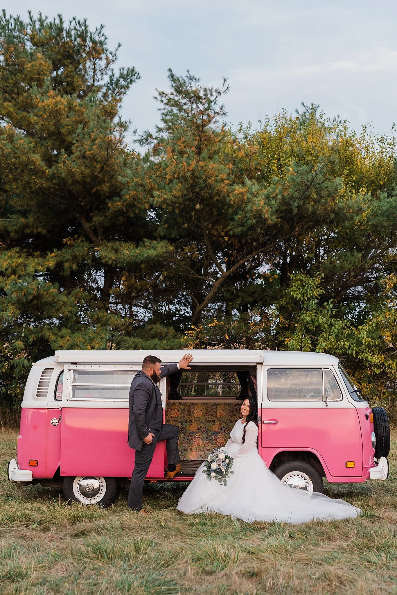 After the ceremony, we had a wonderful time with their portraits. The barn owner also let them borrow their PINK VOLKSWAGEN VAN! It was such a special detail to have for photos. And it complimented Emma’s boho side. That will definitely be a wedding detail to remember!
